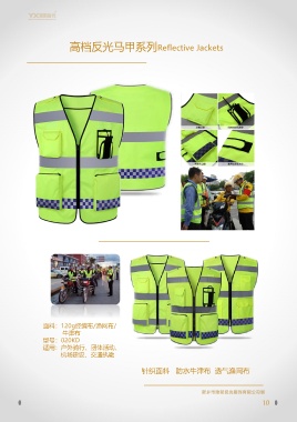 高档反光马甲系列Reflective Jackets 面料:120g经编布/渔网布/ 牛津布 型号:020KD 适用:户外骑行、团体活动、 机场建设、交通执勤 针织面料 防水牛津布 透气渔网布 10