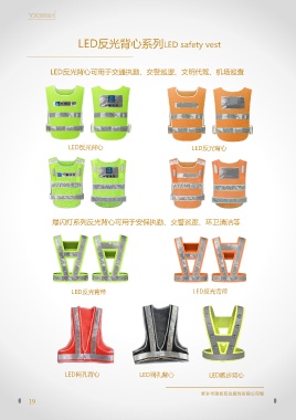 LED反光背心系列LED safety vest LED反光背心可用于交通执勤、交警巡逻、文明代驾、机场巡查 LED反光背心 LED反光背心 爆闪灯系列反光背心可用于安保执勤、交警巡逻、环卫清洁等 LED反光背带 LED反光背带 LED网孔背心 LED网孔背心 LED跑步背心 19